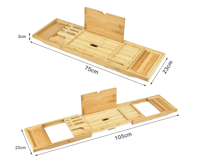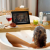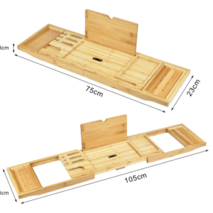 Bambusowa taca kąpielowa do wanny z uchwytem na kieliszek wina i miejscem na laptop/ Półka łazienkowa na wannę – składana