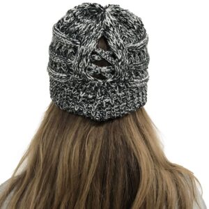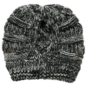 Czapka zimowa na kucyk – biało czarna