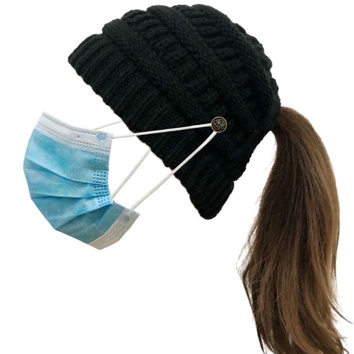 Czapka zimowa na kucyk – czarna