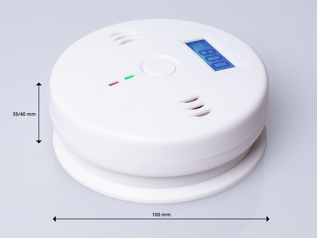 Czujnik CO z sygnalizacją świetlną i dźwiękową.