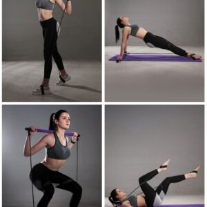 Drążek fitness z gumami do ćwiczeń PILATES BAR – fioletowy