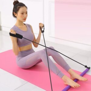 Drążek fitness z gumami do ćwiczeń PILATES BAR – fioletowy