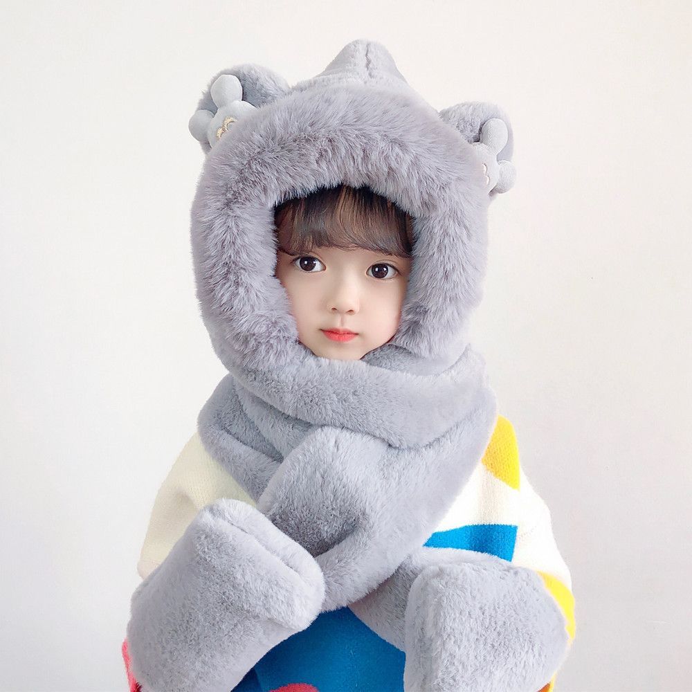 Dziecięca pluszowa czapka z szalikiem i rękawiczkami 3w1 dla dzieci w wieku od 2 do 12 lat – szara