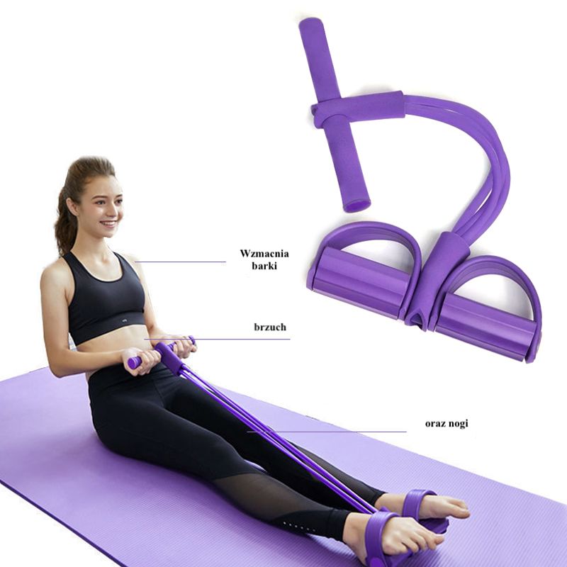 poEkspander fitness na nogi do ćwiczeń mięśni nóg, brzucha, ud – fioletowy