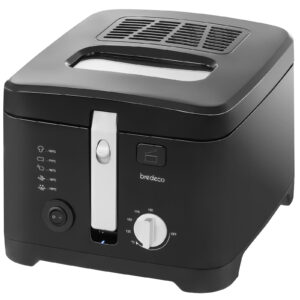 Frytownica marki Bredeco – urządzenie do smażenia w głębokim tłuszczu różnych produktów: ryb, kurczaka, cebulowych krążków, ziemniaków, mrożonych frytek, grzybów itp. Model BCEF 2.5E posiada zbiornik o pojemności 2,5 l, który pozwala na jednoczesne przyrządzenie do 750 g frytek. Wydajność i mocny element grzewczy (1800W) sprawiają, że model BCEF 2.5E nadaje się do komercyjnego, a także prywatnego użytku .