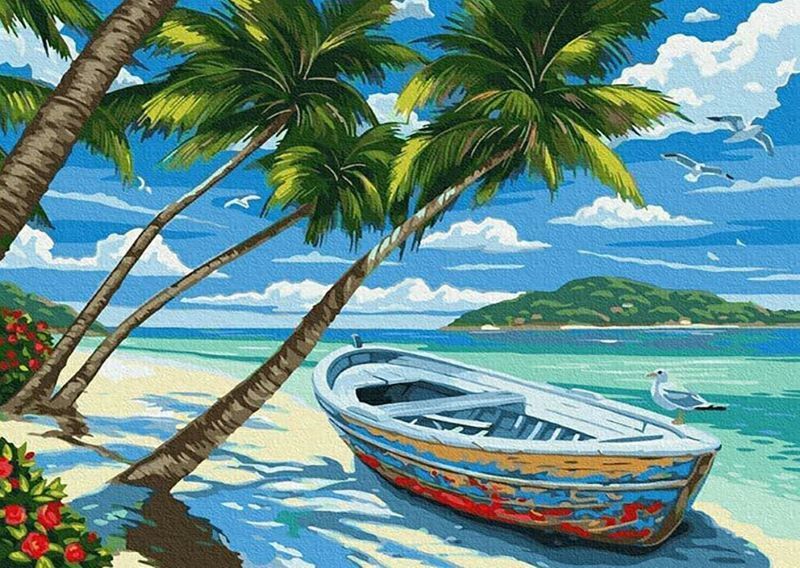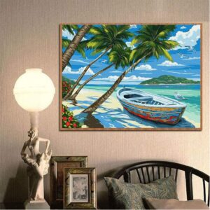 Haft Diamentowy/ Obraz 5D/ Mozaika Diamentowa/ Diamond Painting – tropikalna plaża, rozm. 40×50 cm