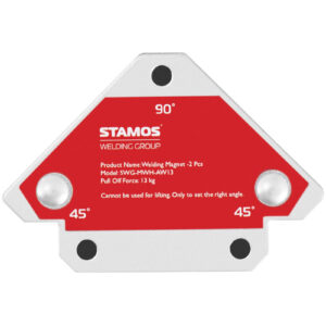 Kątownik spawalniczy marki Stamos sprawdzi się podczas spawania, lutowania czy innych prac montażowych. Konstrukcja urządzenia umożliwia używanie go w różnych pozycjach. Urządzenie można ustawić pod kątami 45/90/135. Silne połączenie magnetyczne zapewnia najwyższy poziom bezpieczeństwa. Duża nośność do 13 kg pozwala na łączenie ze sobą ciężkich metalowych elementów. Obudowa kątownika wykonana została z trwałej stali, która nie odkształca się.
