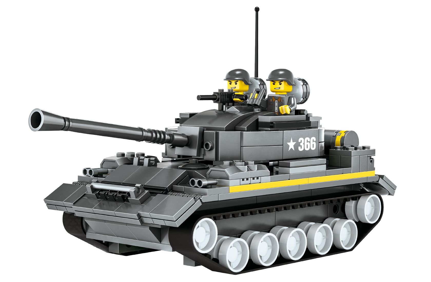 Zestaw militarny w skład którego wchodzą 2 figurki i klocki z któych można złożyć czołg