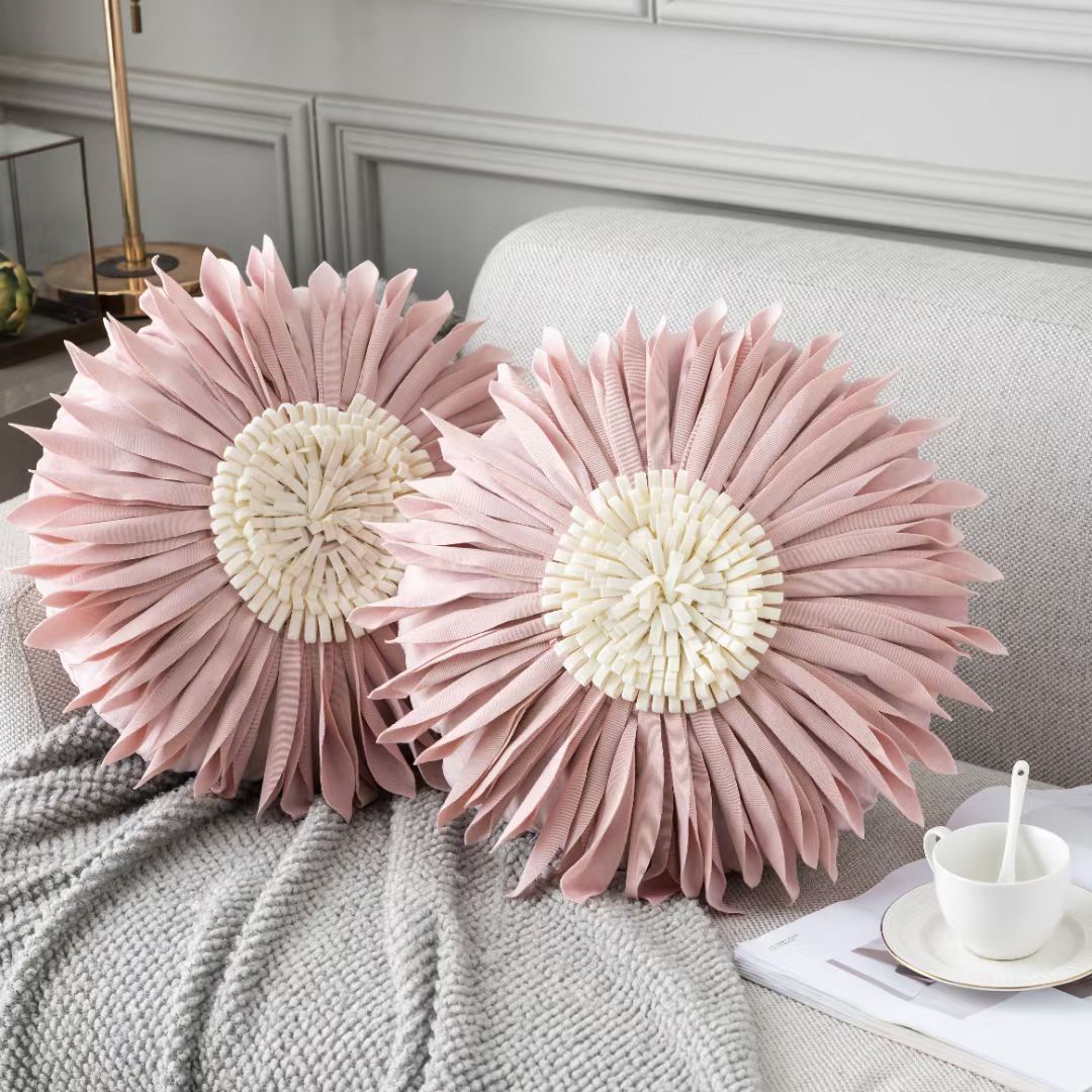 Okrągła poszewka na poduszkę – chryzantema, różowa 45cm