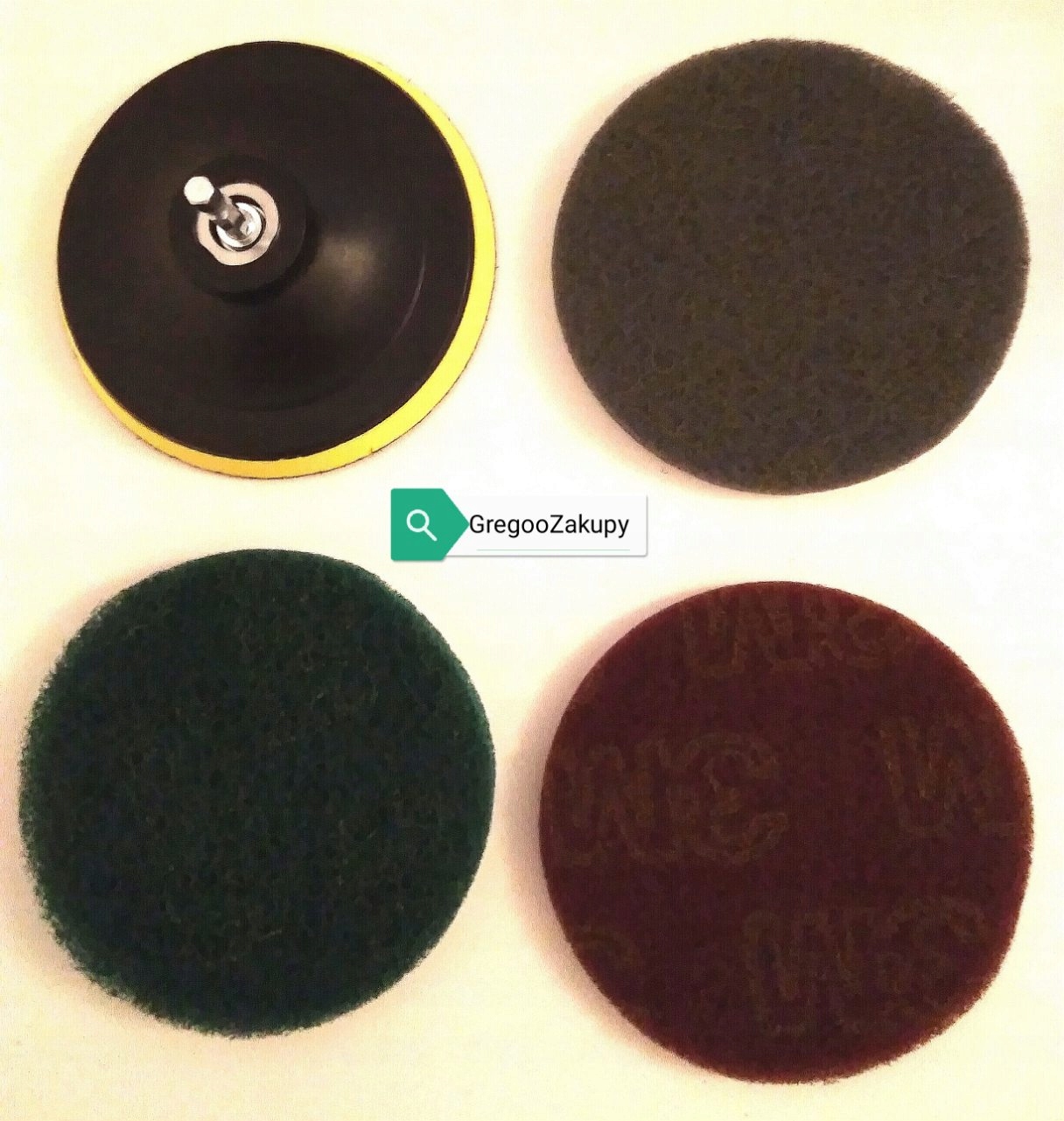 Zestaw 3 podkładek czyszczących wraz z dyskiem mocującym 125mm! Plus trzpień (bitowy)