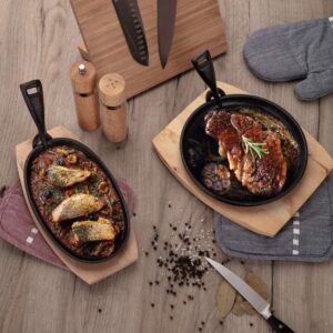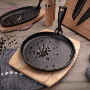 Patelnia żeliwna z deską drewnianą Grada 22cm