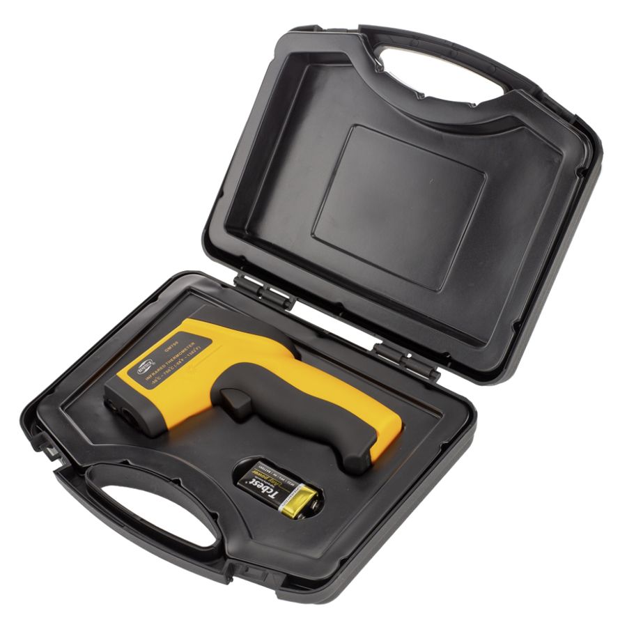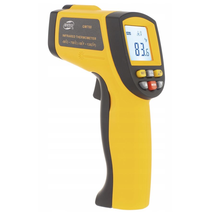 Wytrzymały termometr który umożliwia pomiar temperatury w trudno dostępnych miejscach, pod napięciem oraz gorących. Wykonaj pomiar bezdotykowo i bezpiecznie. Precyzyjnie mierzy temperaturę z powierzchni ciemnych i błyszczących się.
