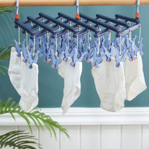 Plastikowy składany wieszak na ubrania z klipsami – 14 klipsów – jasnoniebieski