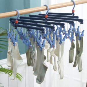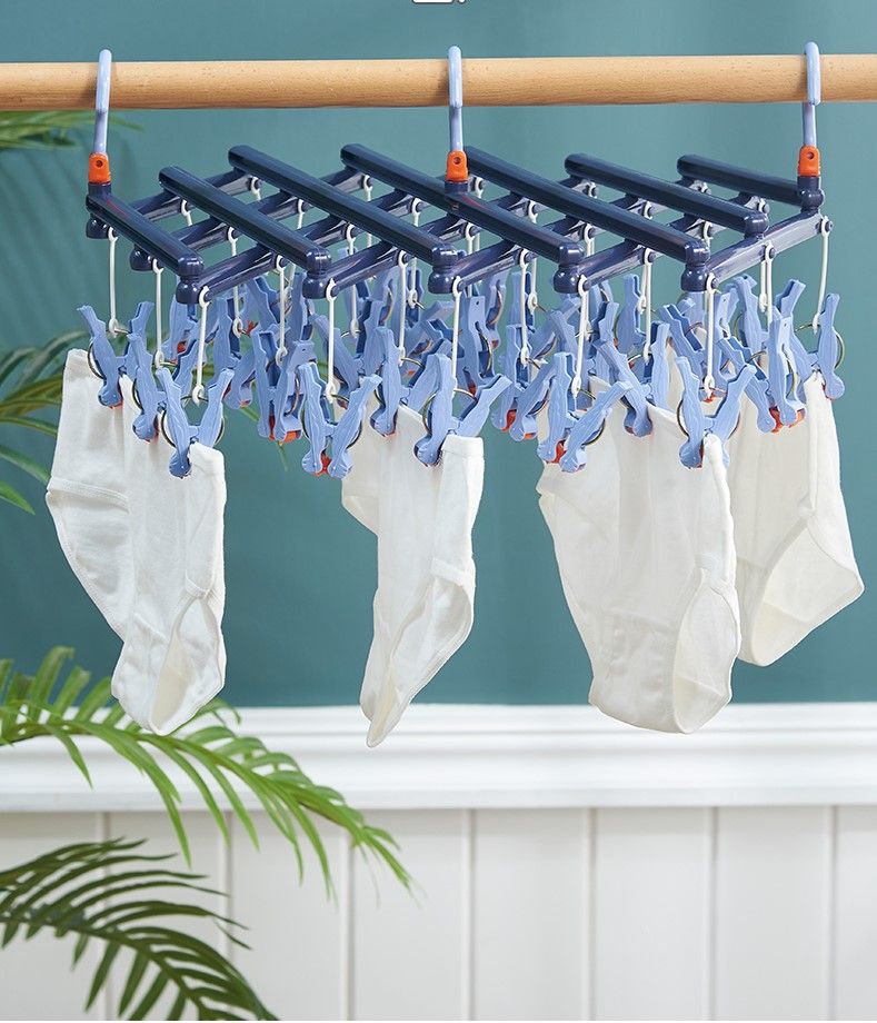 Plastikowy składany wieszak na ubrania z klipsami – 14 klipsów – różowy