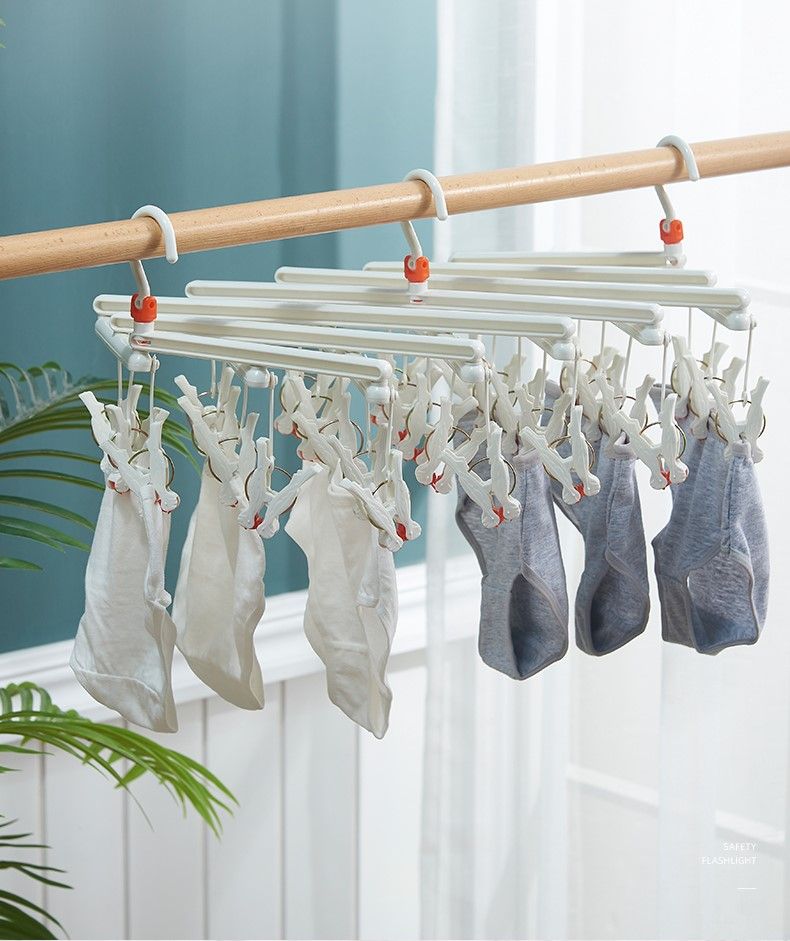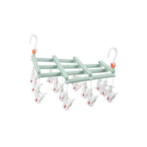 Plastikowy składany wieszak na ubrania z klipsami – 14 klipsów – zielony