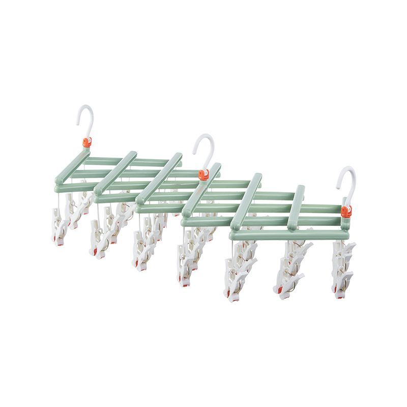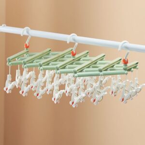 Plastikowy składany wieszak na ubrania z klipsami – 29 klipsów – zielony