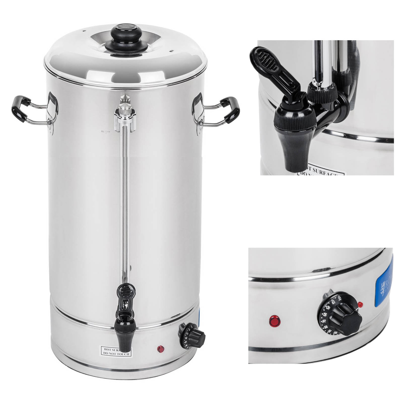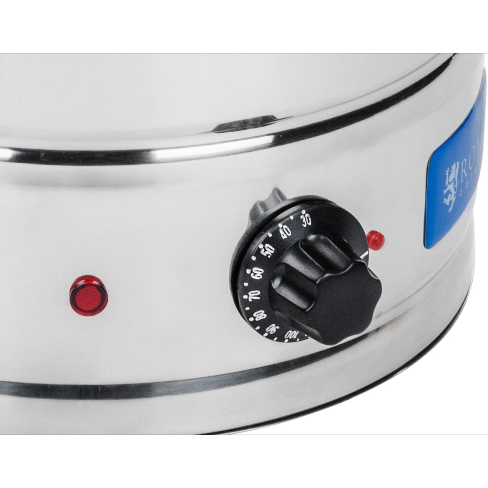 Podgrzewacz do wody, wina, piwa wykonany ze stali nierdzewnej posiada szczelny kranik oraz wskaźnik poziomu. Grzałka jest zabudowana pod dnem pojemnika. Warnik posiada lampkę kontrolną oraz pokrętło do płynnego regulowania temperatury. Termostat zapewnia oszczędność energii oraz możliwość długotrwałego uruchomienia.