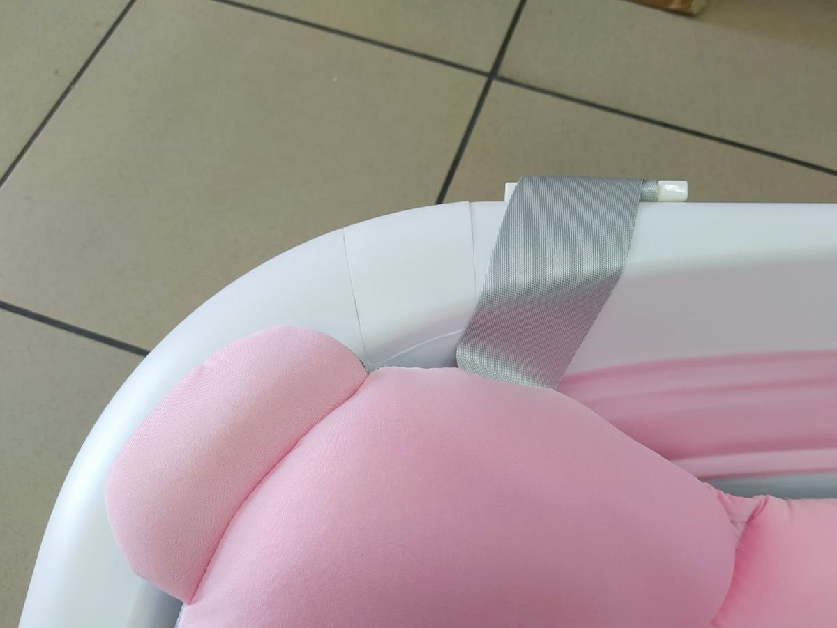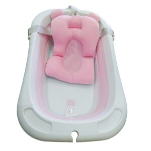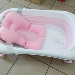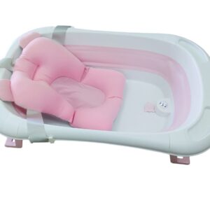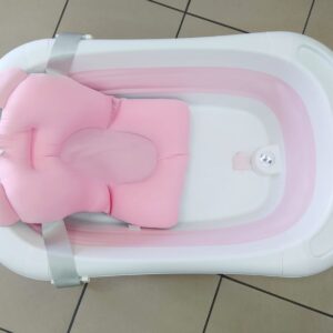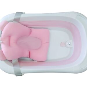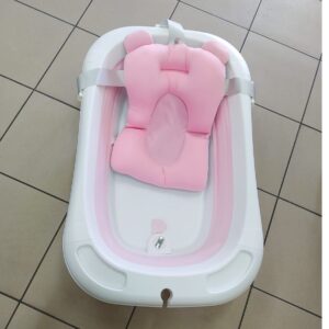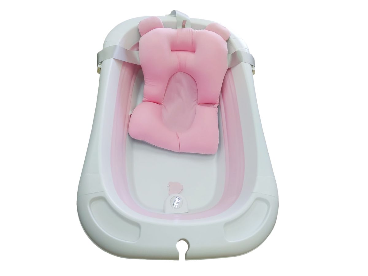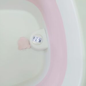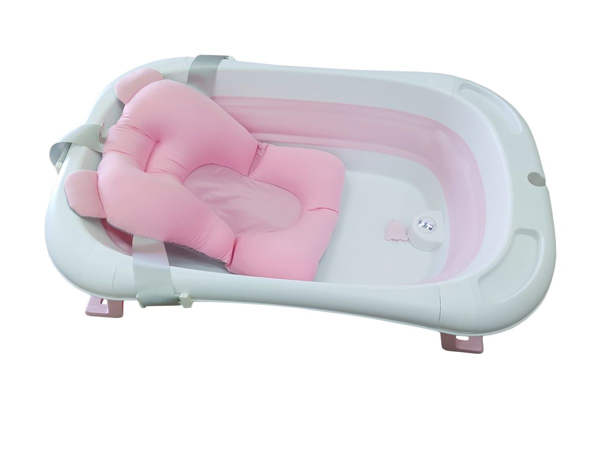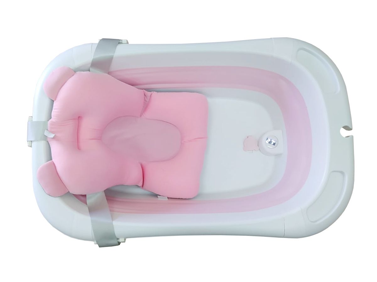 Silikonowa, składana wanienka dla niemowląt – różowa wbudowany termometr i poduszka w zestawie