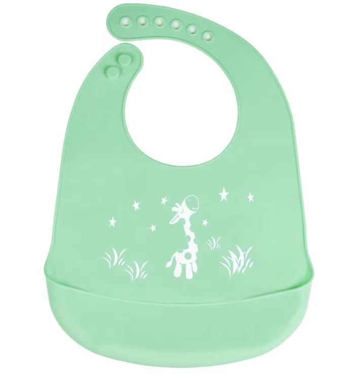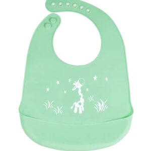Silikonowy śliniak z kieszonką dla dzieci – zielony, żyrafa