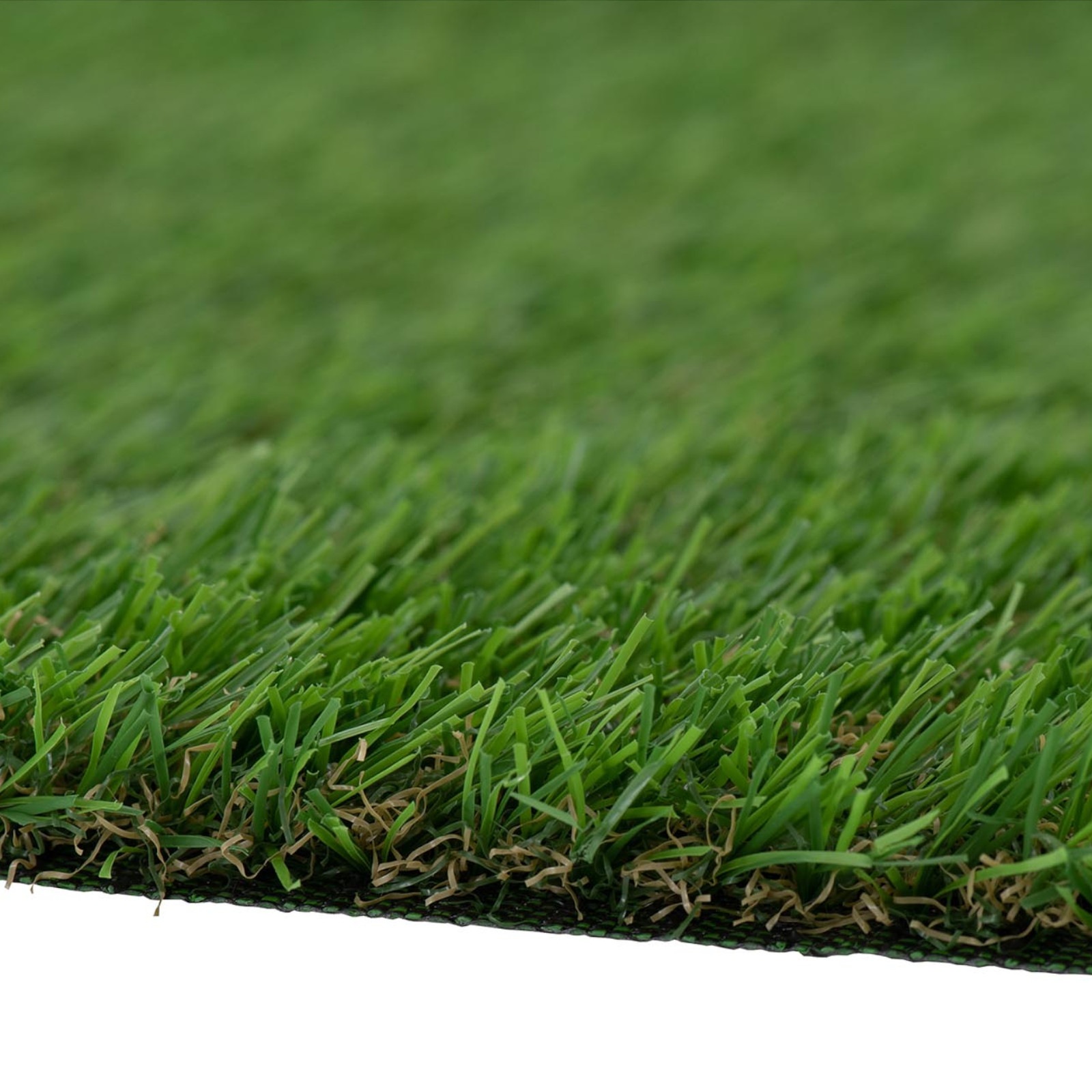 Sztuczna trawa marki Hillvert jest łatwa w pielęgnacji, miękka i łudząco podobna do naturalnej. Idealna do zastosowania na tarasach dachowych, balkonach, na placach zabaw, w przedszkolach itp. Dywan z trawy jest niezwykle odporny, świetnie znosi duże obciążenia, jest łatwy w pielęgnacji. Źdźbła trawy mają wysokość 20 mm. Gładka i miękka powierzchnia jest idealna do chodzenia na boso. Pokrycie o wymiarach 100 x 400 cm jest łatwe i szybkie do ułożenia nawet w wilgotnym środowisku. Przepuszczalność 60 l/min/m2 zapewnia spływanie wody i uniemożliwia zbieranie się kałuż. Wysoka odporność na promieniowanie UV gwarantuje zachowanie atrakcyjnej zieleni przez długi czas.