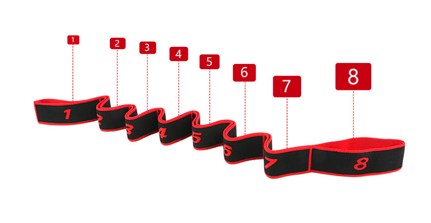 Taśma elastyczna z 8 pętlami do jogi, treningu i rozciągania. Pętle pozwalają na wykonywanie trudnych ćwiczeń, możemy zaczepić stopę i ćwiczyć rozciąganie. Taśma zapeni Nam duży komfort wykonywanych ćwiczeń. Taśma jest częścią podstawowego wyposażenia, zarówno dla początkujących, jak i profesjonalistów jogi. Jest to sprawdzona pomoc w jodze i może być używana na wiele sposobów.