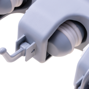 - Wieszak wyposażony w 5 automatycznych uchwytów dostosowujących się do grubości trzonka narzędzia
