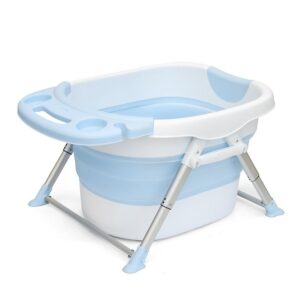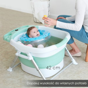 Wanienka składana do kąpieli dla dzieci z poduszką w kolorze miętowym – niebieska