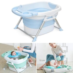 Wanienka składana do kąpieli dla dzieci z poduszką w kolorze miętowym – niebieska
