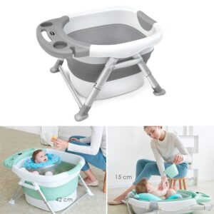 Wanienka składana do kąpieli dla dzieci z poduszką w kolorze różowym – szara