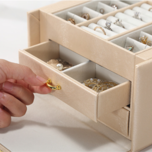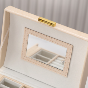 Wielopoziomowa szkatułka LELANI, kuferek na biżuterię L- beżowo-złota
