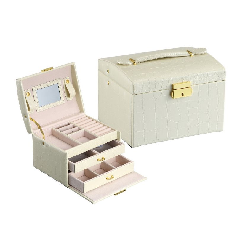 Wielopoziomowa szkatułka LELANI, kuferek na biżuterię Premium – beżowa