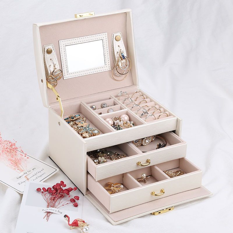 Wielopoziomowa szkatułka na biżuterię, organizer Premium – biała