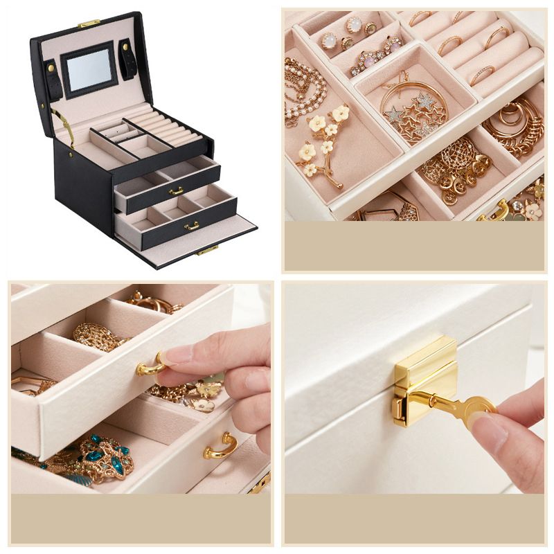Wielopoziomowa szkatułka LELANI, kuferek na biżuterię Premium – czarna