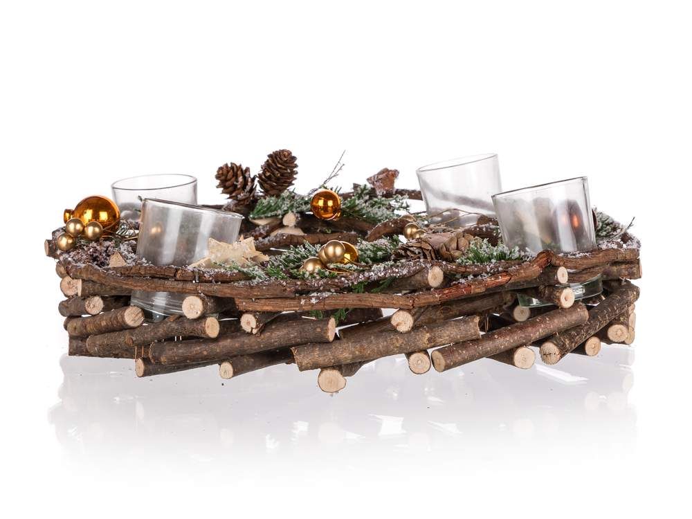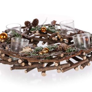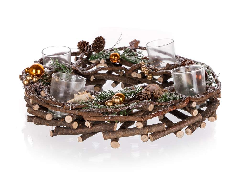 Wieniec adwentowy na 4 świeczki 36cm, brązowo-złoty