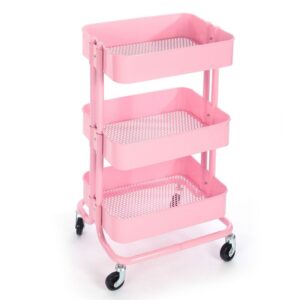 Wózek łazienkowy, regał kuchenny z trzema pojemnymi półkami – różowy