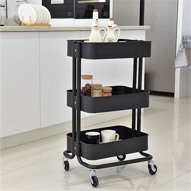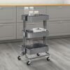Wielofunkcyjna, mobilna, trzy-poziomowa szafka doskonale pozwoli zagospodarować wolną przestrzeń w Twoim domu, biurze, garażu, salonie fryzjerskim. Prosta konstrukcja sprawia, że regał jest uniwersalny i praktyczny.Wielofunkcyjna szafka na kółkach doskonale sprawdzi się w kuchni lub w spiżarni jako dodatkowe miejsce do przechowywania pojemników z żywnością, słoików bądź środków czystości. W trzech koszykach można uzyskać ogromne możliwości przechowywania. Produkt z pewnością sprawdzi się również w łazience, gdzie ułatwi organizację kosmetyków, rolek papieru toaletowego, ręczników oraz środków do sprzątania domu. Metalowa szafka może posłużyć także za ciekawe uzupełnienie biura lub piwnicy. Wielofunkcyjny regał posiada cztery kółka, które zapewnią łatwe przemieszczenie z miejsca na miejsce w chwili gdy znajdzie się taka potrzeba. Produkt został wykonany z najwyższej jakości tworzywa, dzięki czemu zapewnia wytrzymałość, stabilność oraz trwałość.