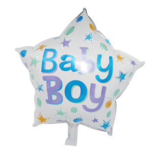- Biały balon gwiazdka z napisem Baby Boy – 2szt