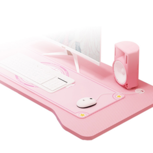 Zestaw gamingowy – Fotel dla gracza z podnóżkiem i biurko gamingowe 100 x 60 – różowy zestaw