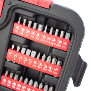 - 60 x bity: (H2 – 3 – 4 – 5 – 6 – 3/32 – 1/8 – 5/32 – 3/16 – 1/4 | PH0 – 0 – 0 – 1 – 1 – 1 – 2 – 2 – 2 – 3 – 3 – 3 – 4 | PZ1 – 1 – 2 – 2 – 3 – 3 | S0 – 1 – 2 – 3 | SL3 – 4 – 4 – 5 – 5 – 6 – 6 – 7 – 7 – 1/8 – 3/16 – 1/4 | T10 -15 – 15 -20 – 25 – 25 -30 – 30 – 40 | TS8 – 10 | TW1 – 2 – 3 – 4)