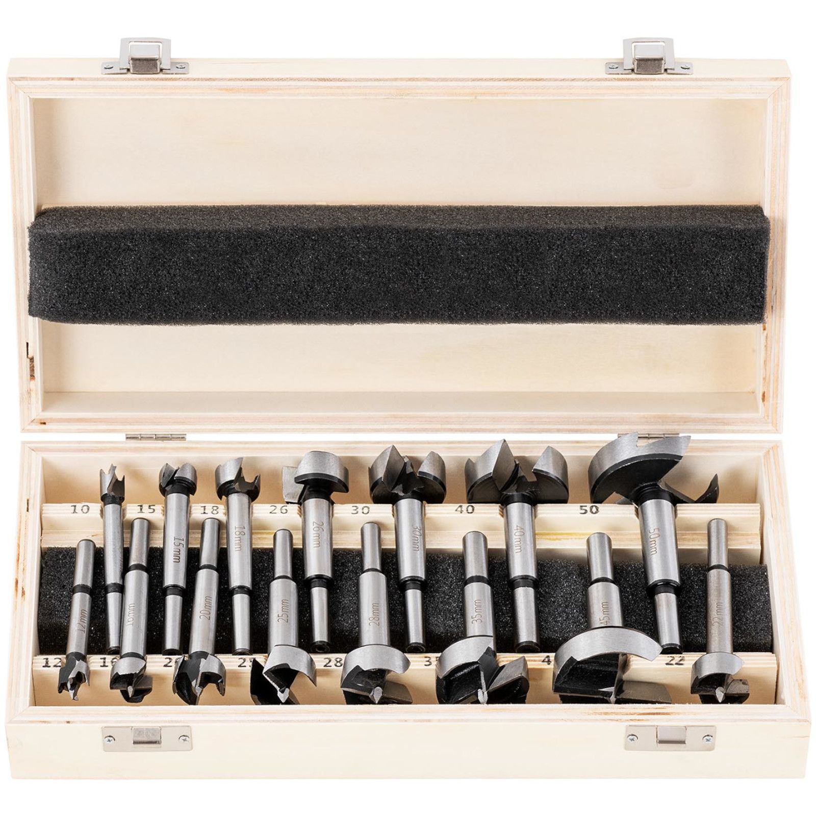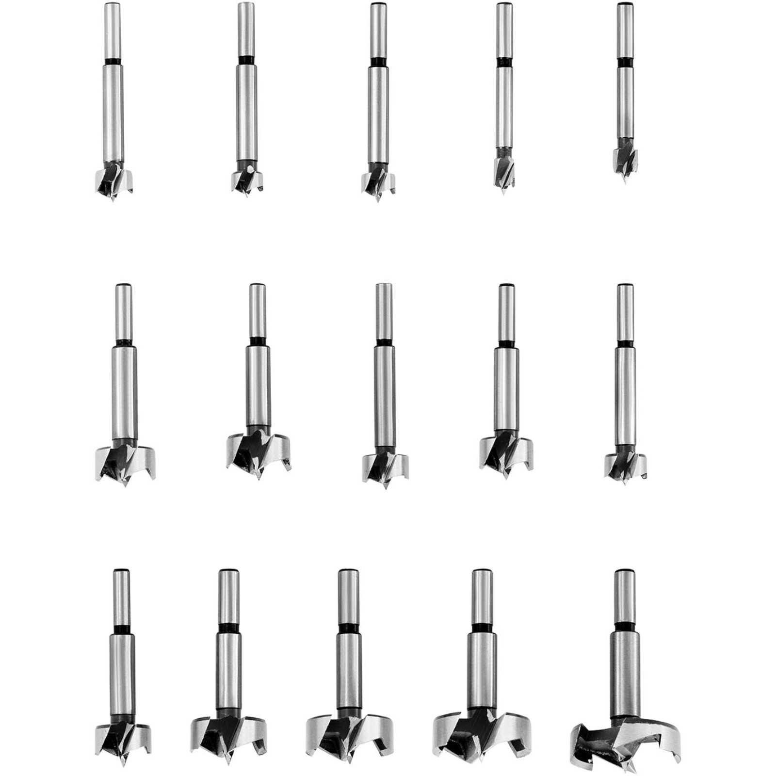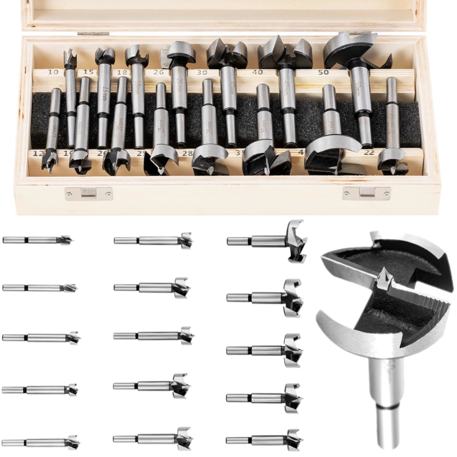 Zestaw wierteł sękowników Forstnera do drewna płyt gk HRC50 dł. 90 mm śr. 10-50 mm – 15 szt.